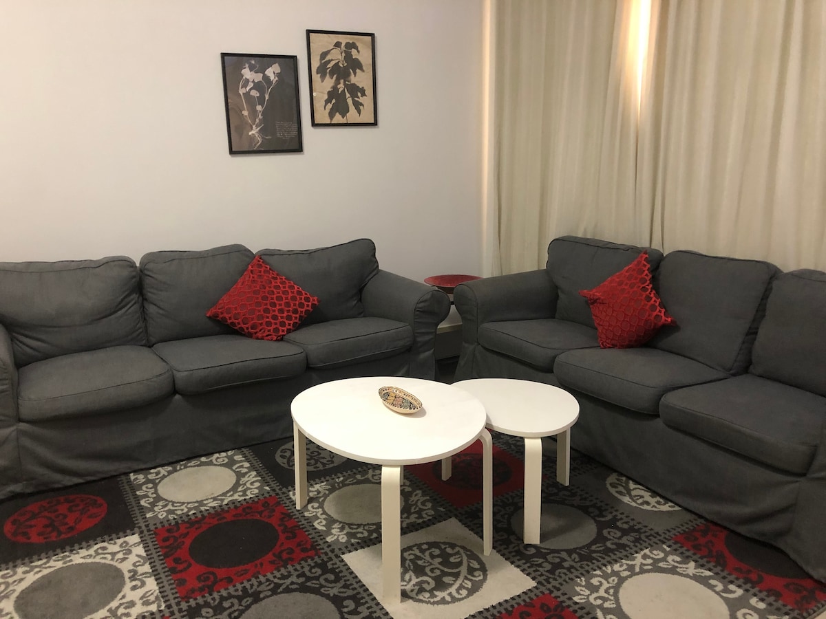 Tágas, világos színű vendéglakosztály. A fő családi házhoz van csatolva. Saját bejárattal és szabadtéri hellyel rendelkezik, amelyet csak a vendég használ. Vadonatúj. Nemrég fejeződött be. Duhail Area, a North Atlantic College, Lekhwia Sport Club közelében.
