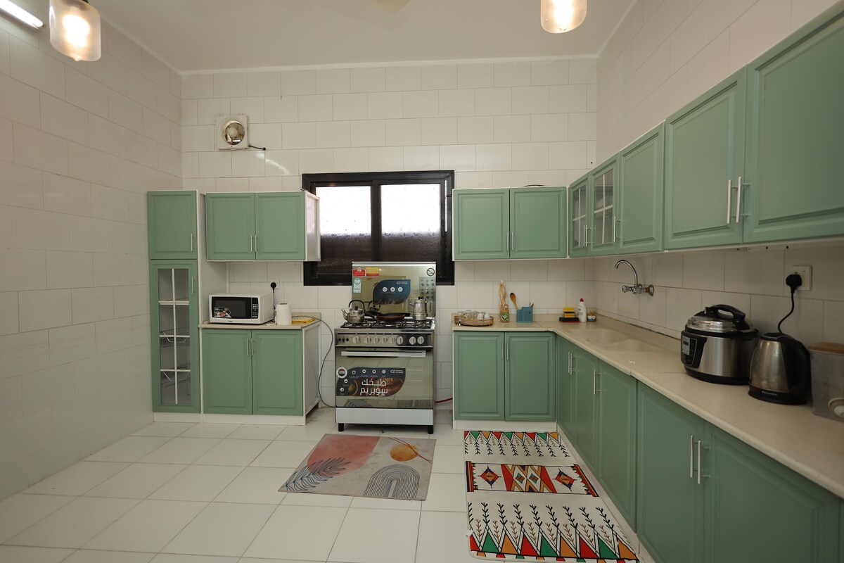 Tágas és csendes lakás elegáns és kényelmes bútorokkal, amely egy nappaliból, két hálószobából, egy konyhából és egy fürdőszobából, valamint egy második emeletből (fiók) áll, minden szolgáltatás 120 méterre található Al-Wasit központi területétől A helyhez biztosítjuk a szükséges szolgáltatásokat, egyszer használatos fürdőszobai eszközöket, főzési és alapvető szállítási eszközöket, internetet, órát, Netflixet, intelligens képernyővédőket, kaweyát, mosást, valamint mosógépet – 18 percre a taifi repülőtértől – Érkezés (önálló) További szolgáltatások a kényelmed érdekében: – Egy szervizmunkás és egy takarító az ingatlanban. – Ingyenes kiszállítást kínáló éttermek.