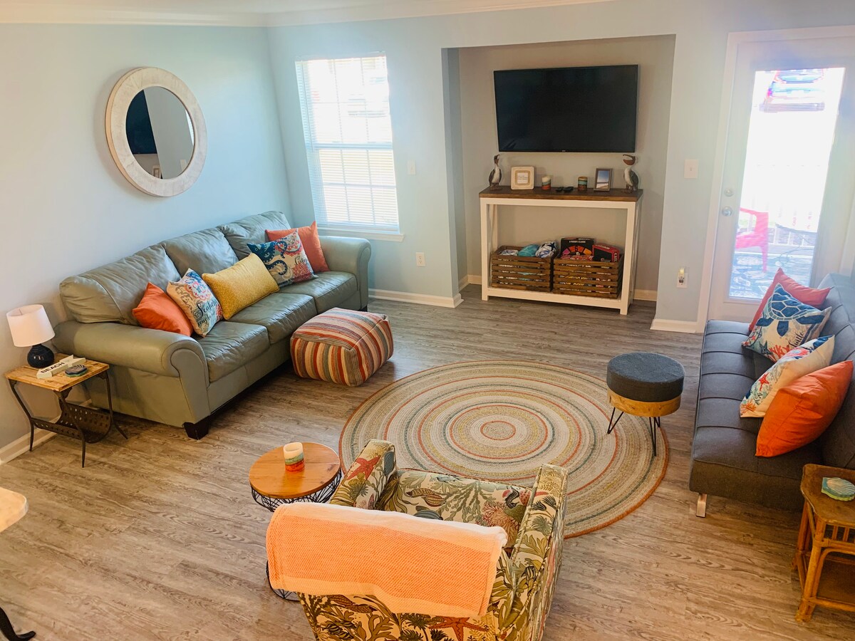Escape the hustle and bustle and settle into this cozy 1 bedroom, 1 bath condo in Gulf Shores. Your first-floor retreat (no stairs!) has all the comforts of home, yet only 4 miles from the beaches of Gulf Shores. It's the perfect spot for 4-5 guests, boasting a King in the bedroom, a futon and twin bunkbeds. Whether you're here for a concert at the Wharf, competing at the Sportsplex(5 mins), taking the kids to OWA (5 mins), or the outlets (5 mins) you're sure to make wonderful memories here!