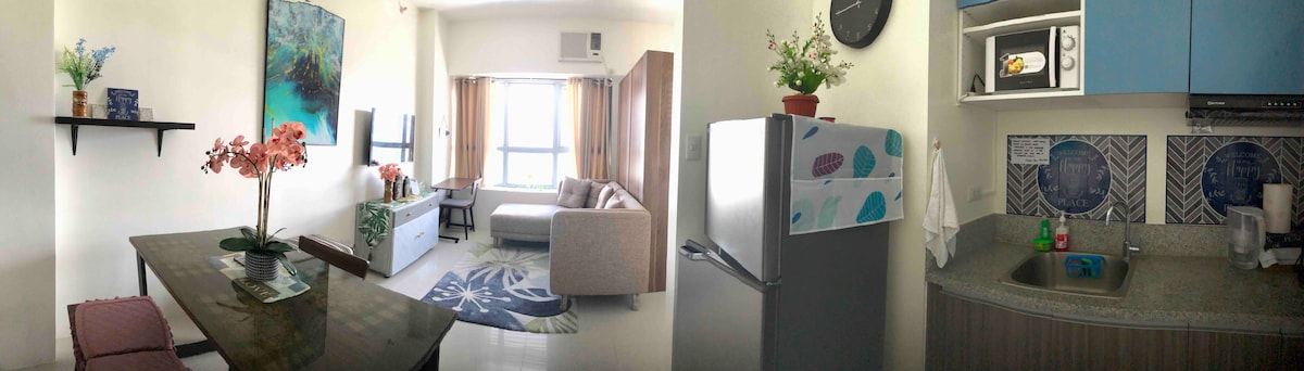 Távolodj el a város nyüzsgésétől a városban, PÉNZTÁRCABARÁT módon. Ha olyan helyet keresel, ahol eltölthetsz egy kis időt a szeretteiddel anélkül, hogy elköltöznél a metróból, ez a tökéletes hely. Érezd a friss levegő szellőjét, amikor belépsz a kapun, miközben fenyőfák fogadnak, amelyek Tagaytay és Baguio hűs hangulatot kölcsönöznek neked. A lakóegység erkéllyel, mosóterülettel, konyhai eszközökkel, 50"-es Smart TV-vel, king méretű ággyal és egyéb kényelmi szolgáltatásokkal rendelkezik, amelyekre szükséged van a teljes nyaraláshoz.