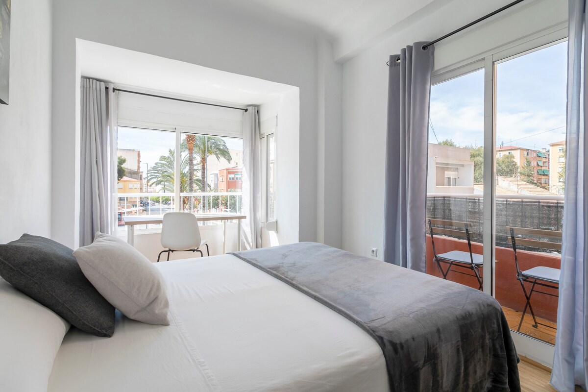 Világos és tágas 3 hálószobás lakás két erkéllyel, Alicante városközpontjától 15 perc sétára. Teljesen felújított, és rövid és hosszabb távú foglalásokhoz is alkalmas. A lakásban van egy kényelmes nappali, gyors Wi-Fi és otthoni munkavégzésre alkalmas hely. A közelben kávézók, éttermek és helyi üzletek találhatók, és Alicante fő látnivalói, köztük a Castillo de Santa Bárbara is könnyen megközelíthetők.