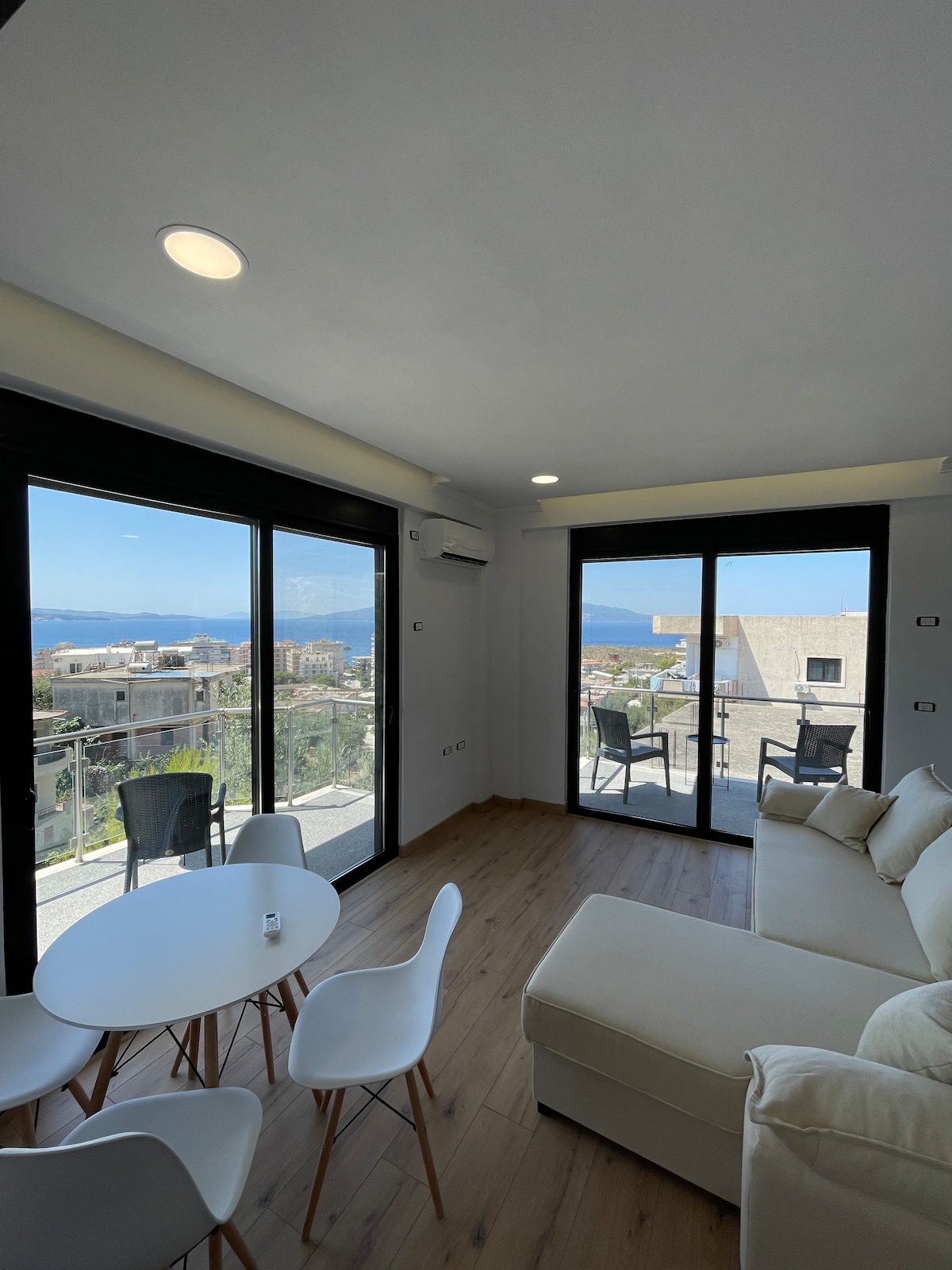 Lélegzetelállító kiruccanás Saranda dombjai között 🇦🇱 Tengerre néző és nyugodt Menekülj a békés domboldali apartmanjainkba a gyönyörű albániai Sarandában. A város fölött elterülő modern egységeink lenyűgöző panorámát nyújtanak a Jón-tengerre, Korfu szigetére és a buja zöld környezetre. Minden apartman teljesen berendezett, saját erkély, légkondicionálás, teljesen felszerelt konyha és gyors Wi-Fi tartozik hozzá. A strandtól és a városközponttól egy rövid autóútra, így mindkét világból a legjobbat élvezheted.