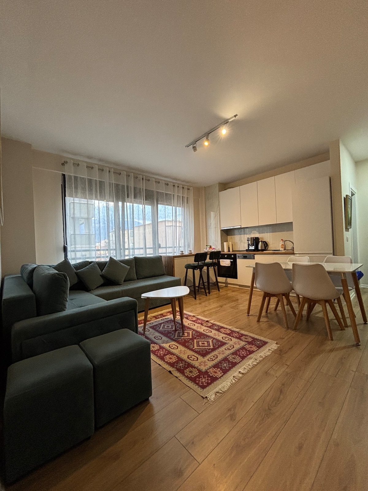 Located in the heart of Tirana, this apartment blends comfort and convenience perfectly. It includes a lively living room, cozy bedroom with a double bed, a modern bathroom, and a private balcony. The fully equipped kitchen and the dining area provides a great spot to enjoy them. With shops, cafes, and public transport just steps away, it’s an ideal location for exploring the city.