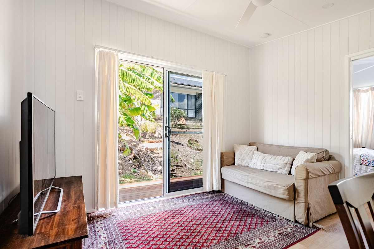 Kick back and relax in this calm, stylish studio located in one of the quiet, leafy streets of Everton Hills just under 10km from Brisbane CBD. This renovated studio apartment is the ground floor of a 70s built free-standing house. We live upstairs, and movement noise is to be expected. You will have your own separate/private entry from the back of the house. The unit has everything you need, which includes a comfy queen bed, a study desk, and a functional kitchen with a washing machine.