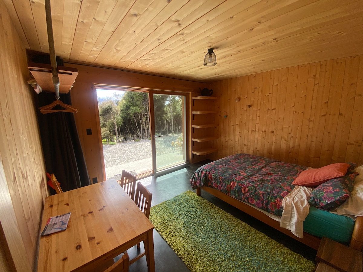 Ez a furcsa stúdió egy rövid autóútra található Wanaka központjától - körülbelül 5 km. Kerüld el a város zsúfoltságát, és élvezd a nyugalmat. Az apartman privát, gyönyörű kilátást nyújt a hegyekre, a helyi farmokra és kertekre. Élvezz egy pohár bort a teraszon, miközben a napsütésben áztatod magad, vagy egy könyvet, miközben beltérben a karosszékbe bújsz. Ha aktív vagy, a helyi sípályák és a Wanaka-tó rengeteg lehetőséget kínál neked. Kültéri tűz áll a vendégek rendelkezésére.