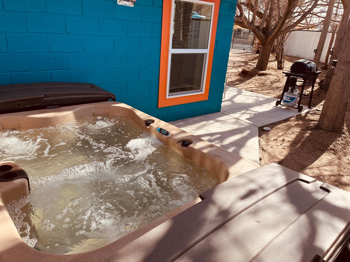 ⭐️ Pihenj, és gyűlj össze a családdal és a barátokkal, hogy felfedezzétek a ⛰️ túra-/🚴kerékpárútvonalakat, és élvezzétek a városra és a naplementére nyíló CSODÁLATOS kilátást 🌅! Az I-40-től mindössze 2 percre északra található, és 5 perc sétára 🥾 található a Sandia Foothills/Cibola National Forest több ösvényétől! Lazíts a 4 fős pezsgőfürdődben italokkal,🍷 és tedd magad kényelmesen a tűzrakóhely körül🔥! Corn hole, minigolf⛳️, Kan-jam és rengeteg 🐕 kutyajáték a kutyáknak! 4 hálószoba/2 fürdőszoba, csodálatos terasz grillezéshez, garázs, mosás és profi konyha 🍽️
