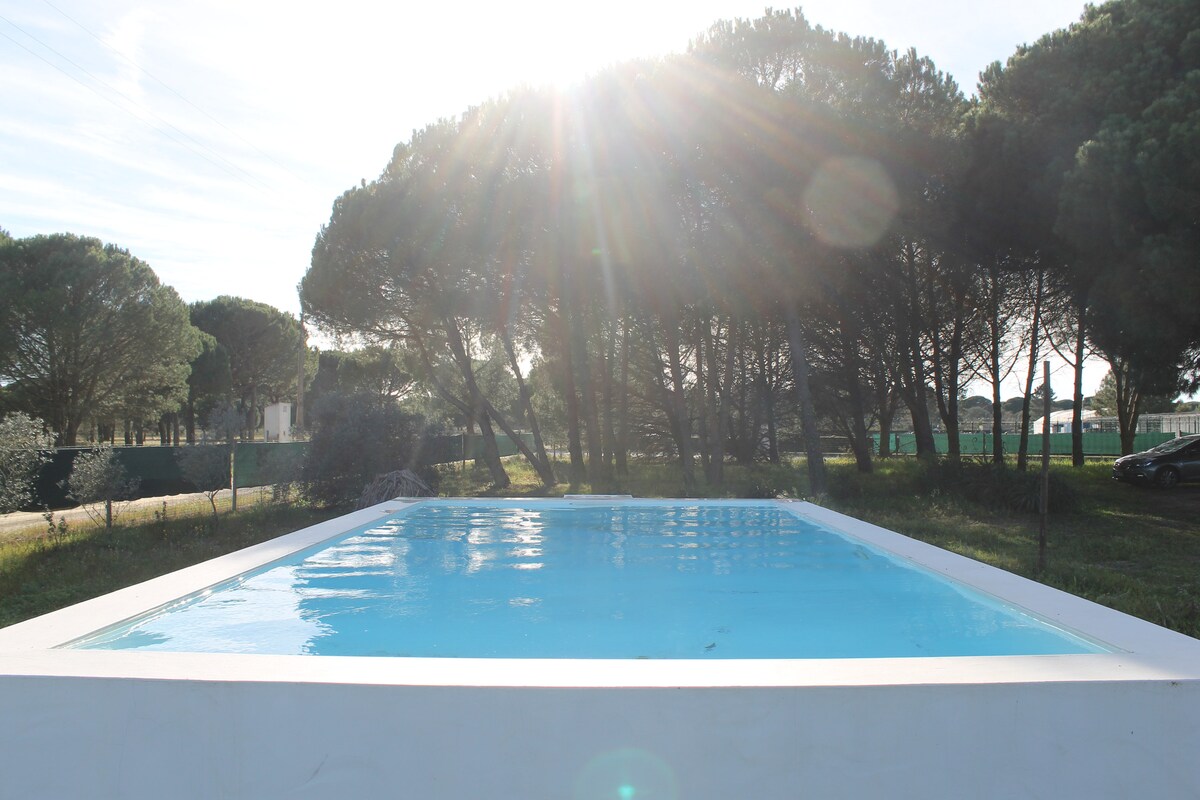 Experience authentic, serene Alentejo in this local farmhouse with a large salt water pool, on a 4 hectare private open prarie. Amazingly relaxing views and wildlife. Discover the Comporta - Melides beaches only 15 minutes from this authentic Alentejo property. A practical 5 min from local farmers stands and shops. Total relaxation with daily cleaning included, except Sundays It’s a place of sublime tranquility away from mass tourism, between Lisbon and the Algarve - 1 hr each way!