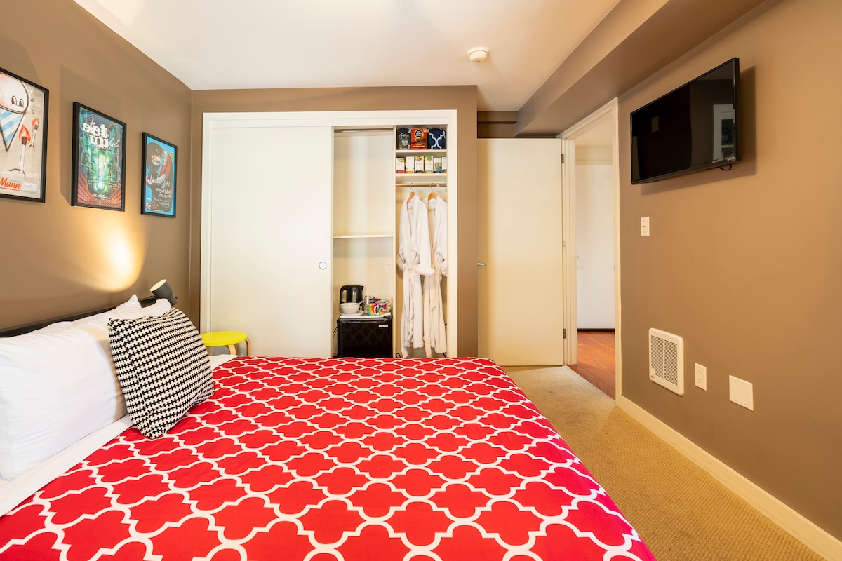 Éld át a kényelmet ebben a stílusos San Franciscó-i szállodai szobában, amely king méretű ággyal, Smart TV-vel és külön munkaterülettel rendelkezik. Lazíts olyan átgondolt részletekkel, mint egy tágas gardróbszekrény, egy teljes hosszúságú tükör és egy modern fürdőszoba plüss, kiváló minőségű törölközőkkel. Fizetős parkolás kérésre lehetséges. Ez a hívogató hely, amely tökéletes helyen, bájos parkok, üzletek és helyi éttermek közelében található, és ideális a munkához és a kikapcsolódáshoz a városban töltött időd során.