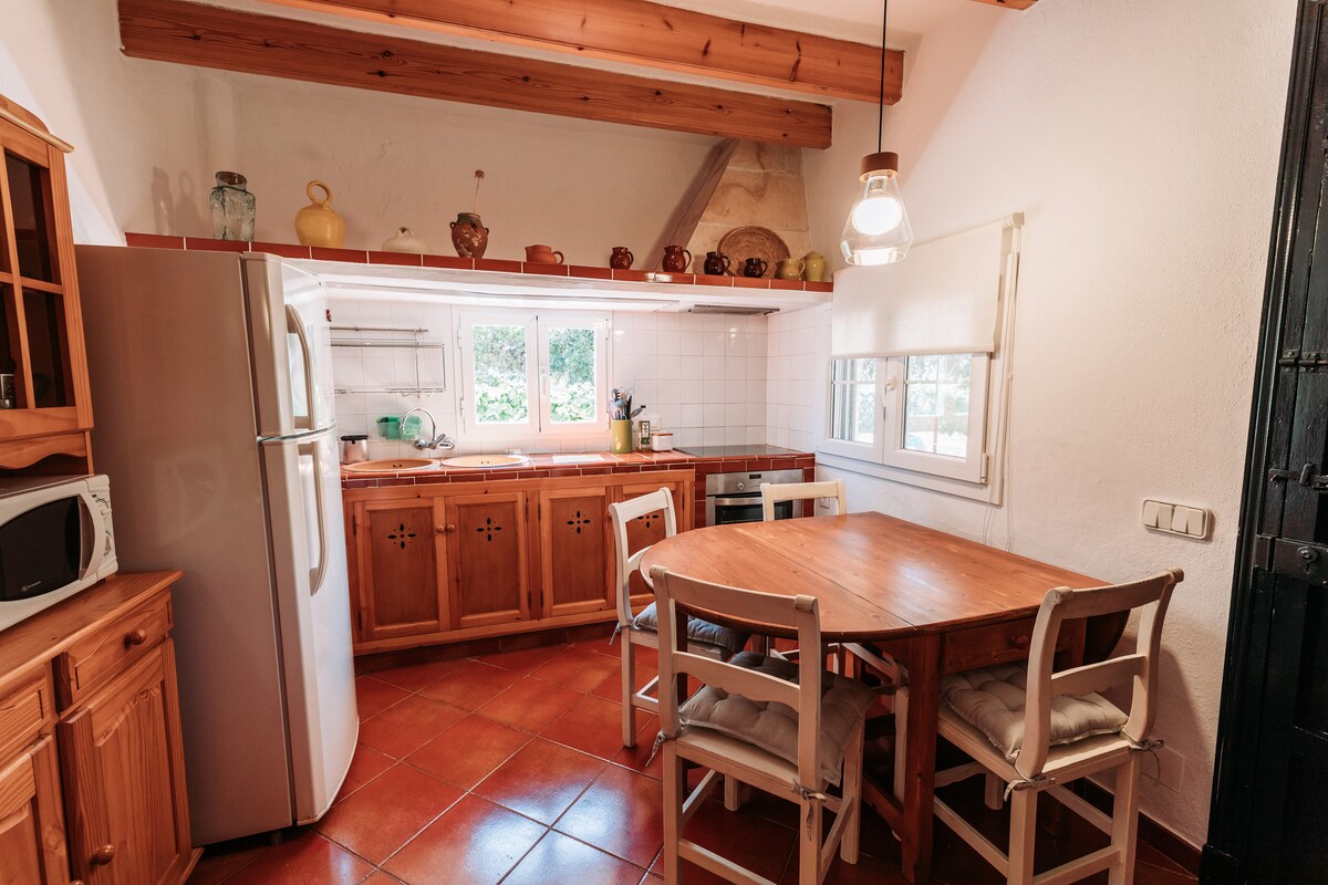 This accommodation exudes tranquility: relax with the whole family! A large porch surrounds much of the villa, allowing you to enjoy beautiful distant sea views from the outdoor living area. The peaceful setting invites you to unwind and soak up the Menorcan sun. The garden and the entire house are equipped with amenities perfect for barbecues and relaxing afternoons. The house consists of 3 double bedrooms and 3 bathrooms, only one of the bedrooms is a suite.
