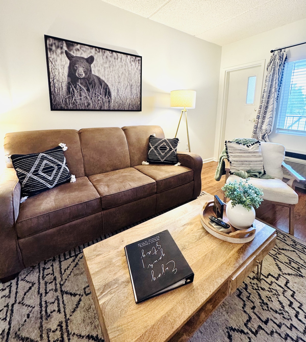 A picturesque residential location with proximity to downtown, the University of TN, and outdoor recreation make this charming apartment ideal for your next Knoxville vacation. Modern and fresh with luxury finishes, the 1bed/1-bath space comfortably accommodates up to 4 guests, and every room in the residence are impeccably styled with soothing tones & decor that perfectly embody the area’s natural beauty. Whether visiting for business or pleasure a stay here feels like home-away-from-home.
