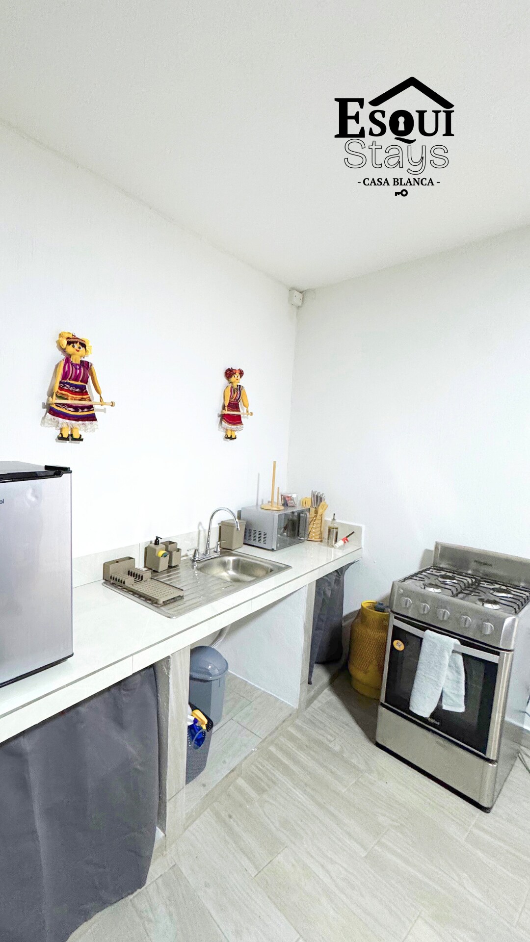 Élvezd a kényelmes és elegáns szállást a lakásunkban, amely mindössze 7 háztömbnyire található a fenséges Esquipulas-bazilikától. Tökéletes pároknak, barátoknak vagy családoknak. Ez a hangulatos hely légkondicionálóval, meleg vízzel, gyors internettel és egy teljesen felszerelt konyhával rendelkezik, amelyben tűzhely és hűtő is van, így ideális az étkezések elkészítéséhez. Parkolás az ingatlan előtt, ahol biztonságos és csendes hely van. Kültéri kamerák is vannak a biztonságod és kényelmed érdekében.