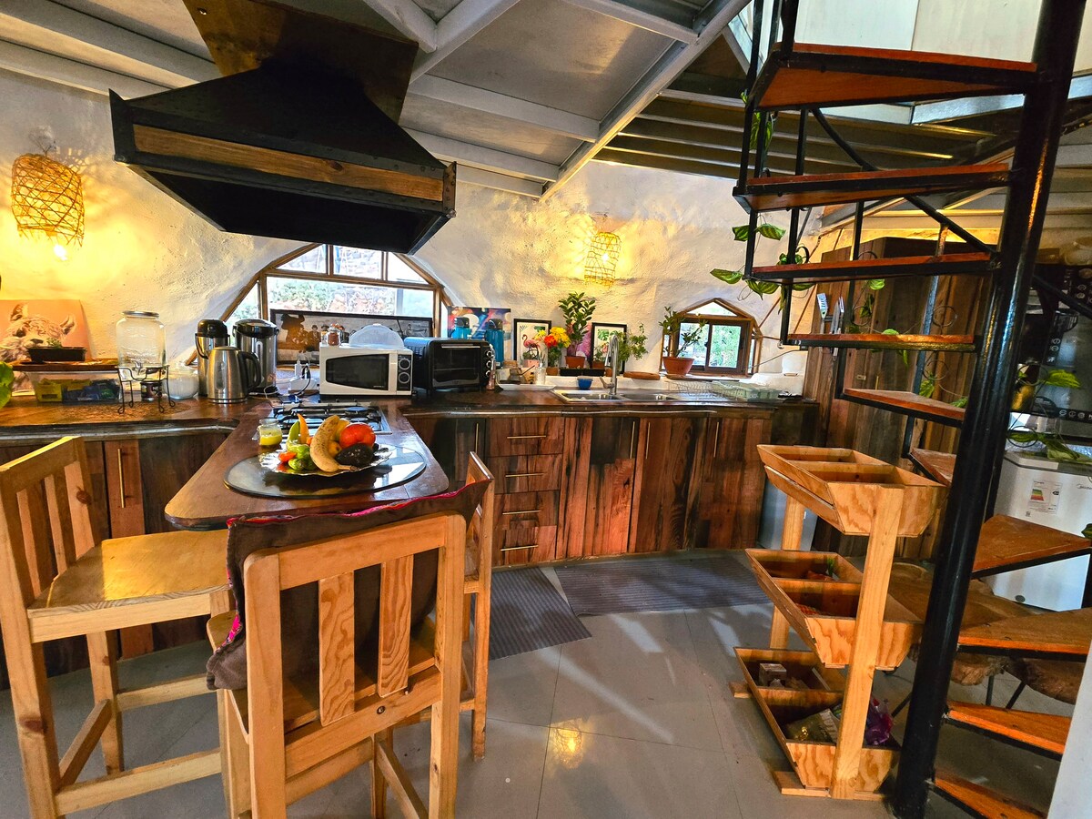 Teljes és privát luxusszállás, amelyet családdal együtt élvezhetsz. Van egy tinajám, medencém, teraszom jógázáshoz, kvarcágyam. Napfény 🌞 garantált, az éjszakai ég pedig csillagos 🌠. az éjszakára van egy quinchónk, egy nagy argentin stílusú grillezővel és beltéri tábortűzzel. A hely csendes, biztonságos és nagyon csendes a környéken. Ideális a leválasztáshoz és a pihenéshez. többek között masszázsszolgáltatással, hangterápiával, méhészkedéssel, jógával.