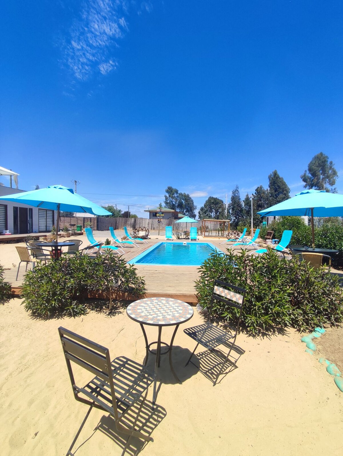 4 hálószobás ház telek 4 duplaággyal + 2 egyszemélyes ággyal, 2 fürdőszobával, nagyon nagy medencével, tinaja-val, quincho-val, kandallóval, nagy galériával, sok hellyel a családdal, minden rusztikus, mégis nagyon kényelmes és nagyon csendes, kevesebb mint 15 percre Algarrobo fő strandjától, a Mirasol strandtól, 18 km-re Tunquentől, zárt társasházi lakás, ideális a kikapcsolódáshoz és az élvezethez, nagyon biztonságos és csendes, sok hely parkolásra és szórakozásra.