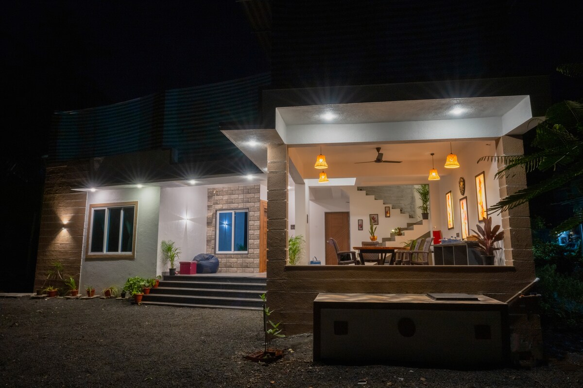 Üdvözlünk az Athavan Meadowsban, az alibag-i Awas Beach-től mindössze pár percre található békés kiruccanásod🌴. Élvezd a frissítő medencét, a tábortüzes estéket, a beltéri és kültéri játékokat, a grillesteket és az autentikus helyi konyhát. Megjegyzés: A barátságos és közösségközpontú légkör megteremtése érdekében minden csodálatos kényelmi szolgáltatásunkat megosztjuk az üdülőhellyel, ami nagyszerű lehetőséget kínál a többi utazóval való kapcsolatfelvételre. Tökéletes családok, barátok és még háziállatok számára is 🐾- az Alibag kiruccanásod a kikapcsolódáshoz és az emlékekhez.