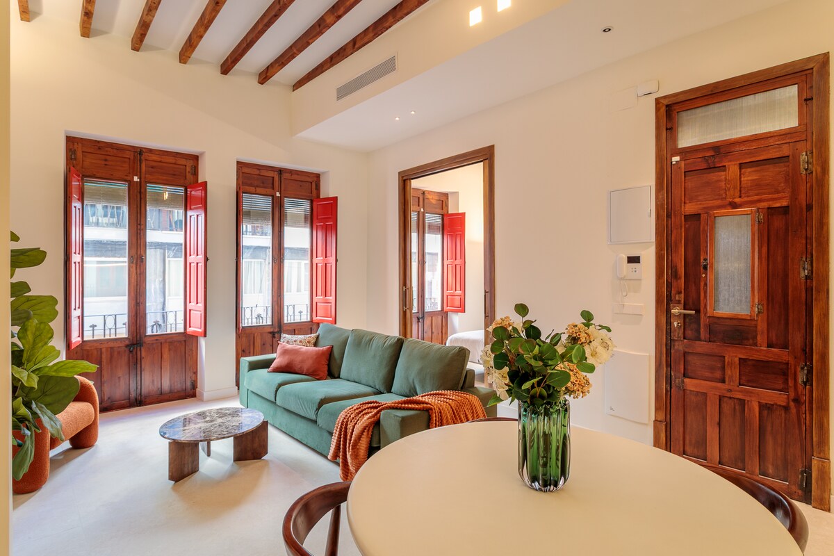 This beautiful, spacious and luminous 110 sqm loft is located in the heart of Alicante’s historic center with views over the old town. We renovated and designed this place respecting the traditional ways to build at the time, with limestone and wooden beams, while offering all the amenities of a modern apartment and a little bit of luxury. The beach is a 5 minutes (350m) walk away and the numerous nearby bars and restaurants invite you to enjoy the typical Mediterranean vibes of the old town.