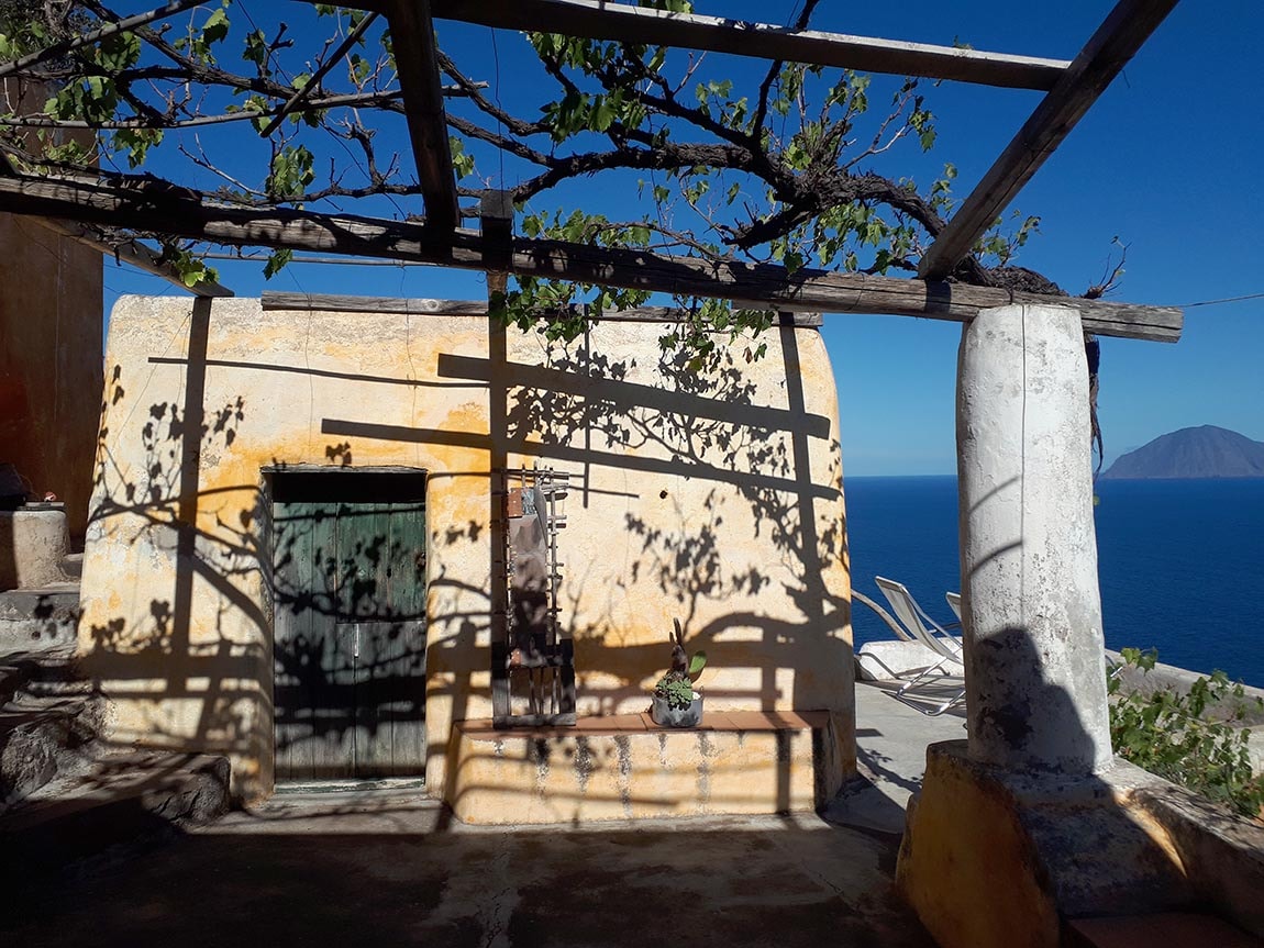 Alicudi, Eoliai-szigetek, Ősi parasztház egy még vad szigeten, szigetbútorokkal berendezve, konzervatív restaurálás. Izola nem rendelkezik autókkal, csak öszvérek szállítják a poggyászt és a bevásárlást, a ház kétszáz méterrel a tengerszint felett van. Csak gyalog, a lépcsőn, öszvérrel lehet megközelíteni (20-30 perc gyalog). Egy archaikus sziget, ahol a természet a legmagasabb, lassú kapcsolódási idő. Nincs fény az utcákon, csak csillagok és hold. Ezért a minimális tartózkodási idő a házban hét éjszaka.