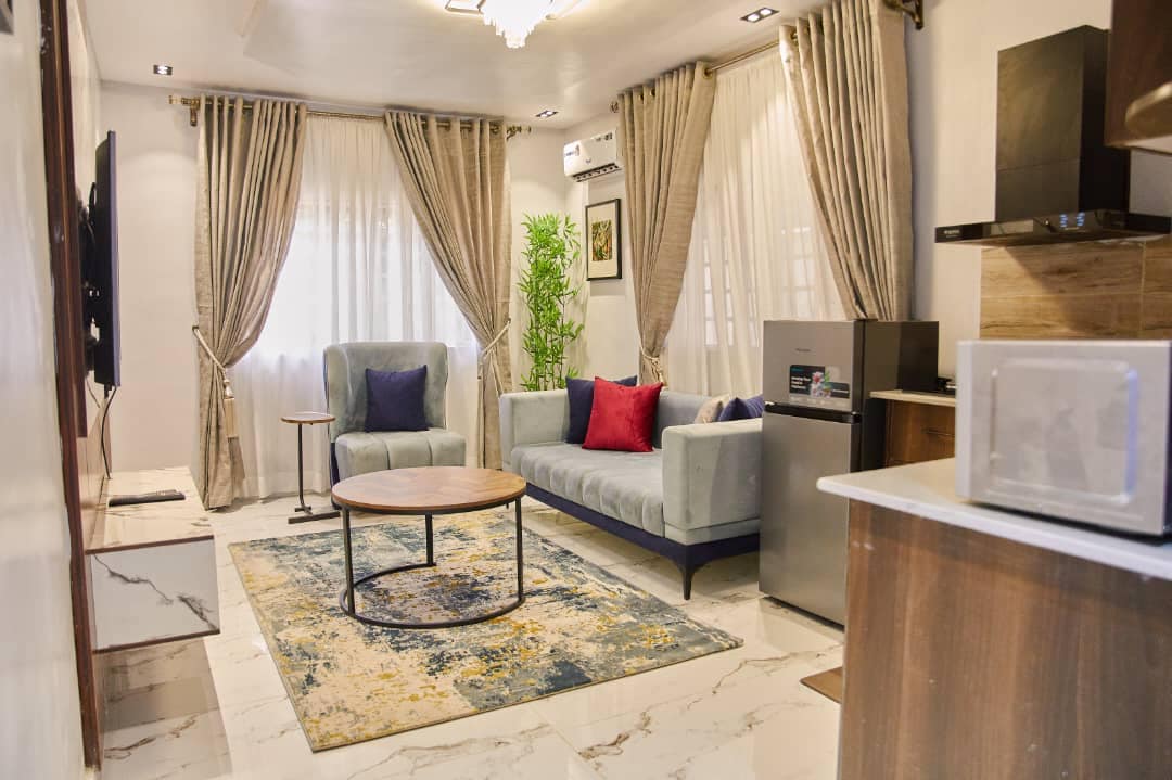 This unique place has a style of its own. It is located directly opposite Mobolaji Johnson Train station. Less than 10 mins walk to Ozone cinema. A Lot of options for restaurants and supermarket. Easy connection to 3rd mainland bridge. Fully serviced apartment with regular power, uniformed security, visitors rest room, air conditioned, Hi speed internet, smart tv with Netflix, house keeping service, laundry in apartment, smart lock. Lastly, amazing view from your room and top of the building