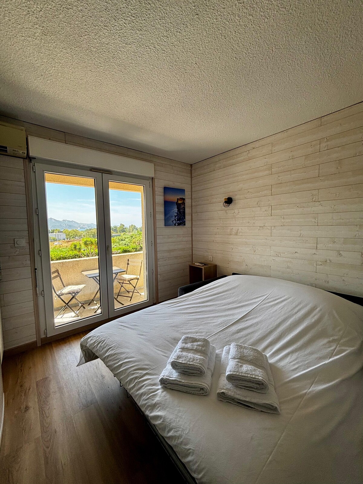 Saint Florentben található, 300 méterre a központtól és mindössze 1 km-re az 1. strandtól. A szálláshelyek közé tartozik a légkondicionáló, a nappali/konyha mosogatógéppel, a sütő, a mikrohullámú sütő, a kávéfőző és a vízforraló, valamint az étkező, valamint a saját fürdőszoba zuhanykabinnal és hajszárítóval. A két hálószoba mindegyike 160 cm-es ággyal rendelkezik. Az ágyneműt és a törölközőket biztosítjuk. A Bastia Poretta repülőtér 31 km és Bastia kikötője 24 km-re található.