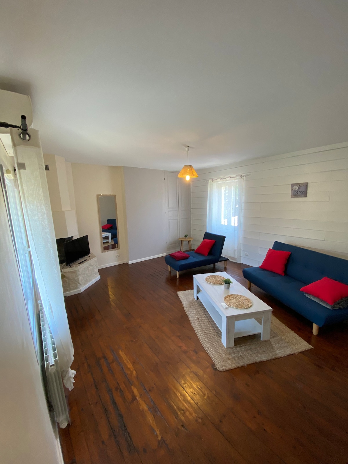 STUDIO neuf entièrement meublé en Rdc avec Terrasse et Jardin attenant. A 100m du centre du village, calme, toutes commodités, épicerie, boulangerie, coiffeur, docteur, rivière, terrain de pétanque à proximité, emplacement parking privé dans résidence sécurisée avec digicode, il dispose d'une cuisine équipée, sdb, salon climatisé avec canapé convertible 2 places au rdc et chambre mezzanine à l'étage avec dressing et lit 2 places.