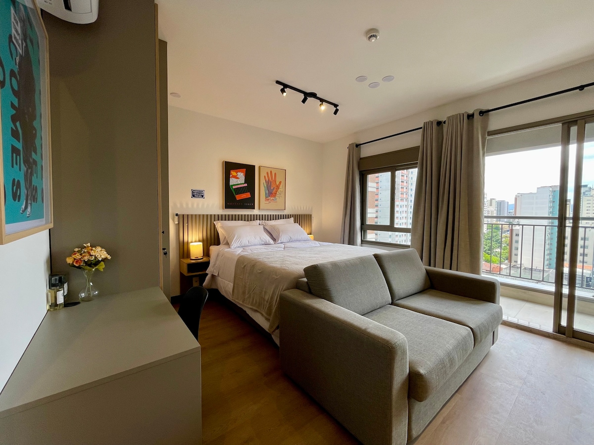 Újonnan felújított stúdió, saját stílussal, városi és kozmopolita. Magas színvonalú, gyönyörű, kreatív és jó elhelyezkedésű, kiváltságos kilátással az Allianz Parque 21. emeletére. Számos üzlet, közlekedési eszköz, park, turisztikai látványosság és üzleti épületek mellett. A stúdió teljes, kényelmes franciaággyal, konyhával és minden eszközzel, minibárral, fagyasztóval és nagy sebességű internettel rendelkezik. Tökéletes azoknak, akik értékelik az emlékezetes és egyedi élményeket.