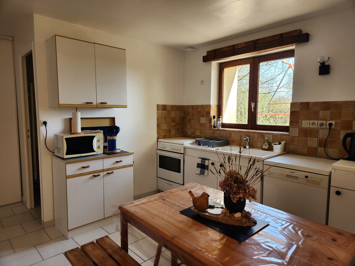 Au cœur de la Bourgogne, grande maison lumineuse avec 3 lits doubles et deux chauffeuses parfaites pour les enfants; kit bébé sur demande (lit parapluie chaise haute). Linge fourni. A 2 heures de Paris, proche de: - Château médiéval de Guédelon, - Château de Saint Fargeau avec son spectacle son et lumière - Saint Amand en Puisaye, capitale de la poterie, - Château de Ratilly, - Saint Sauveur en Puisaye. Toutes commodités à deux pas: épicerie, bureau de Poste, café, tabac, boulangerie.
