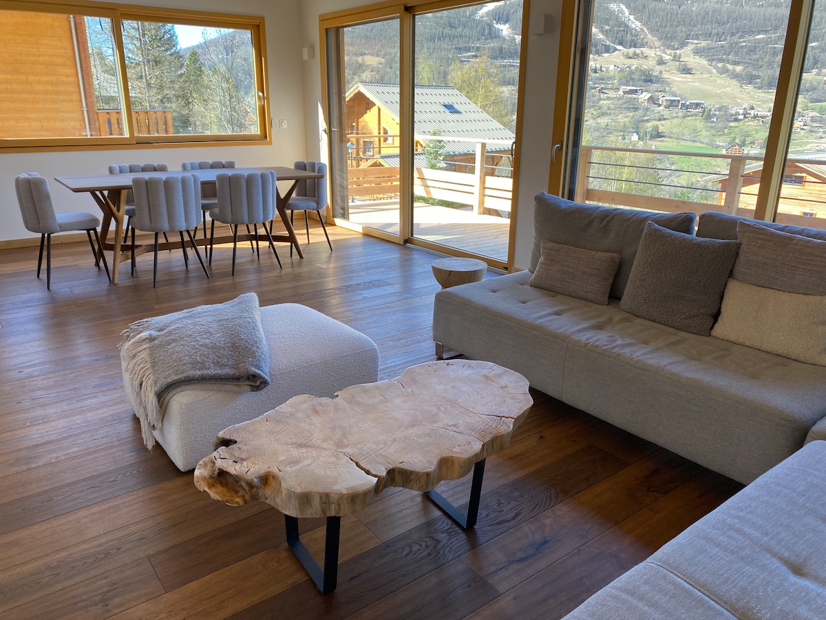 Chalet Familial de Prestige à 5min des pistes Face à la montagne, sa structure reste humble. En son sein elle épate. Terrasses de paresse, cuisine de goût, charpente craquante de charme et de poids. Flammes enivrantes, bains de soleil et de bulles Yosemite est un lieu qui saura accueillir, vos moments, vos histoires et, bientôt vos souvenirs. En famille ou entre amis laissez vous guider Il est un chalet Il est quelques instants de vies gravés