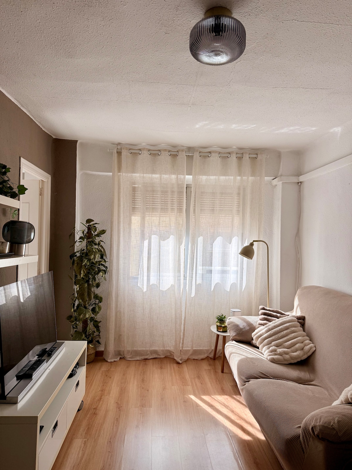 A nemrég felújított, egy hálószobás apartman modern, világos és barátságos helyet kínál. A semleges tónusok és a természetes anyagok pihentető légkört teremtenek, amely ideális a valenciai tartózkodásodhoz. Franciaágy minőségi ágyneművel, fényben úszó nappali, teljesen felszerelt konyha és légkondicionálás. Tökéletes helyen van, hogy élvezhesd a várost, és nyugodt, modern otthonba térhess vissza.
