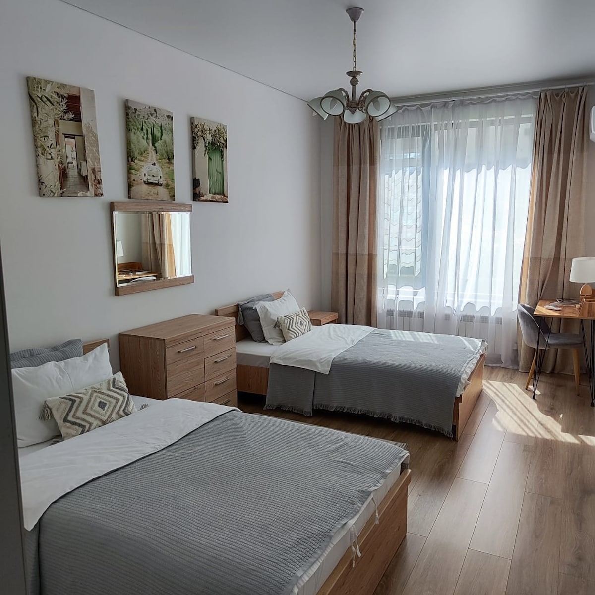 We are a local family offering our spacious 220 sq.m apartment near Central Stadium, perfect for families or groups. It has 3 bedrooms, a living room, kitchen, dining area, 3 bathrooms, 3 balconies, 2 closets and 7 beds - in a secure elite complex in the city centre. With us, you won’t just rent an apartment, but you’ll have the best memories of Almaty: my mom can greet you with homemade meals, and my dad can pick you up from the airport. Message me here if you have any questions, and welcome!