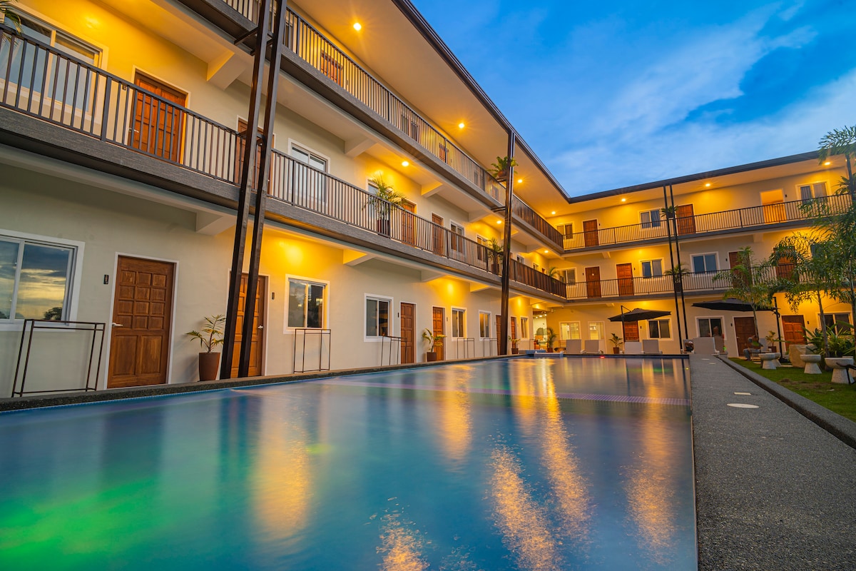 Szállj meg ezen a különleges helyen, és élvezd a luxusszálláshely-élményt. A szálloda a Panglao-sziget szívében, Boholban található, 5 percre a repülőtértől és 10 percre az Alona strandtól. A szálloda egyedi építészeti stílussal, tágas és világos szobákkal, teljes felszereltséggel és professzionálisan megtervezett, 1 és 3 méter közötti mélységű búvármedencével rendelkezik, amely lehetővé teszi a pihentető és kellemes nyaralást. Ingyenes reptéri transzferszolgáltatást biztosítunk ütemezés szerint.