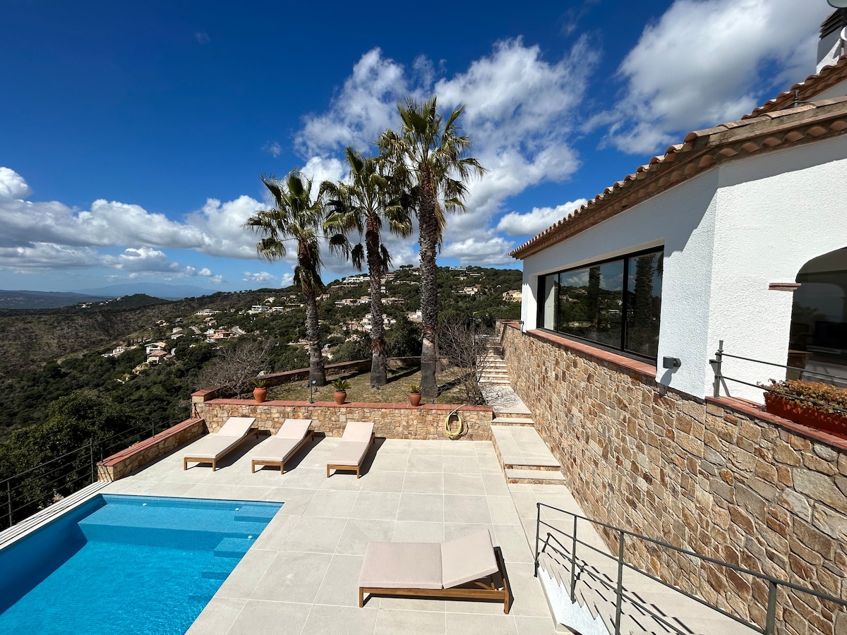 A délre néző spanyol luxusvilla nagyszerű helyen található a Mas Nou hegyen, lenyűgöző kilátással a vidékre és a tengerre. A villát a természet veszi körül, így teljes mértékben élvezheted a nyugalmat. Platja d'aro nyüzsgő központja és strandja 7 percnyi autóútra található. A szállás bőséges helyet kínál fűtött medencével és számos szabadtéri terasszal és pihenőhellyel, így mindenki saját teret kap.