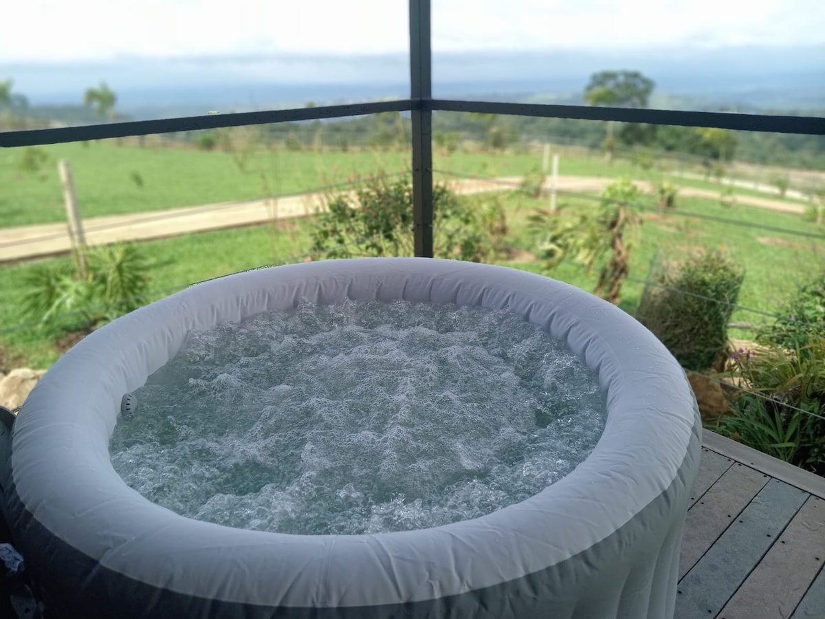 Nestled high on the Platanar Volcano slopes, enjoy sweeping views of the northern plains below. The lights of Aguas Zarcas twinkle below at night, the only sounds you hear are toucans, macaws, coyotes and mountain breezes. This is a place for ultimate relaxation far from the crowds at the beaches. A place to be alone and reconnect with nature. Spend the day on the patio reading a book or soaking in the jacuzzi. Watch the lightning in the distance. Enjoy cool weather away from the lowland heat.