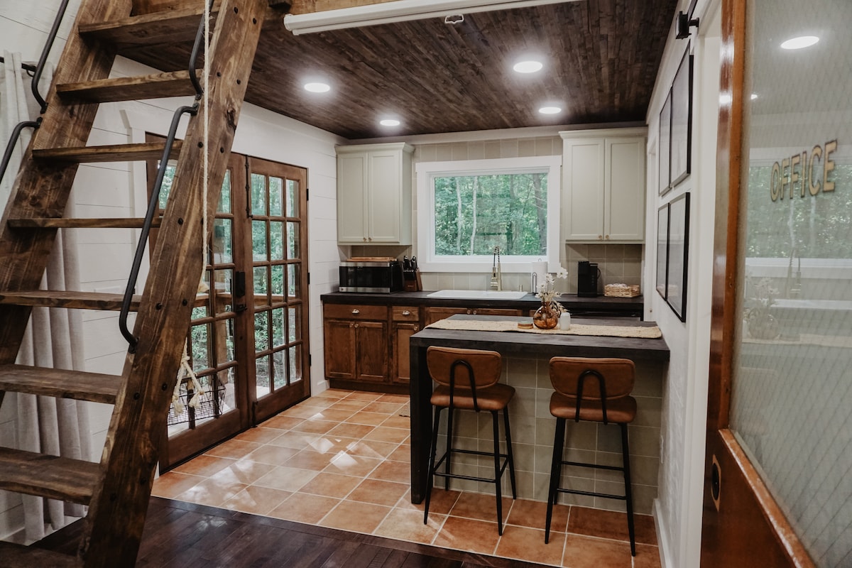 The Coalmont is a 4 acre waterfront retreat on top of the South Cumberland Mountains of Tennessee, between Nashville and Chattanooga. Ez a 460 négyzetméteres „apró” víkendház legfeljebb 4 főnek biztosít alvást. A kényelmi szolgáltatások között megtalálható a csónak, pezsgőfürdő, horgászat, drótkötélpálya, gyepjátékok, nagy teraszok összejövetelekhez, tűzrakóhely és gyönyörű táj. Tökéletes menedékhely azoknak a pároknak, akik romantikus kiruccanásra vágynak, a családoknak, akik szeretnének kikapcsolódni, és újra találkozni szeretnének a minőségi idővel, vagy bárkinek, aki csendes helyet keres, ahol távolról dolgozhat.