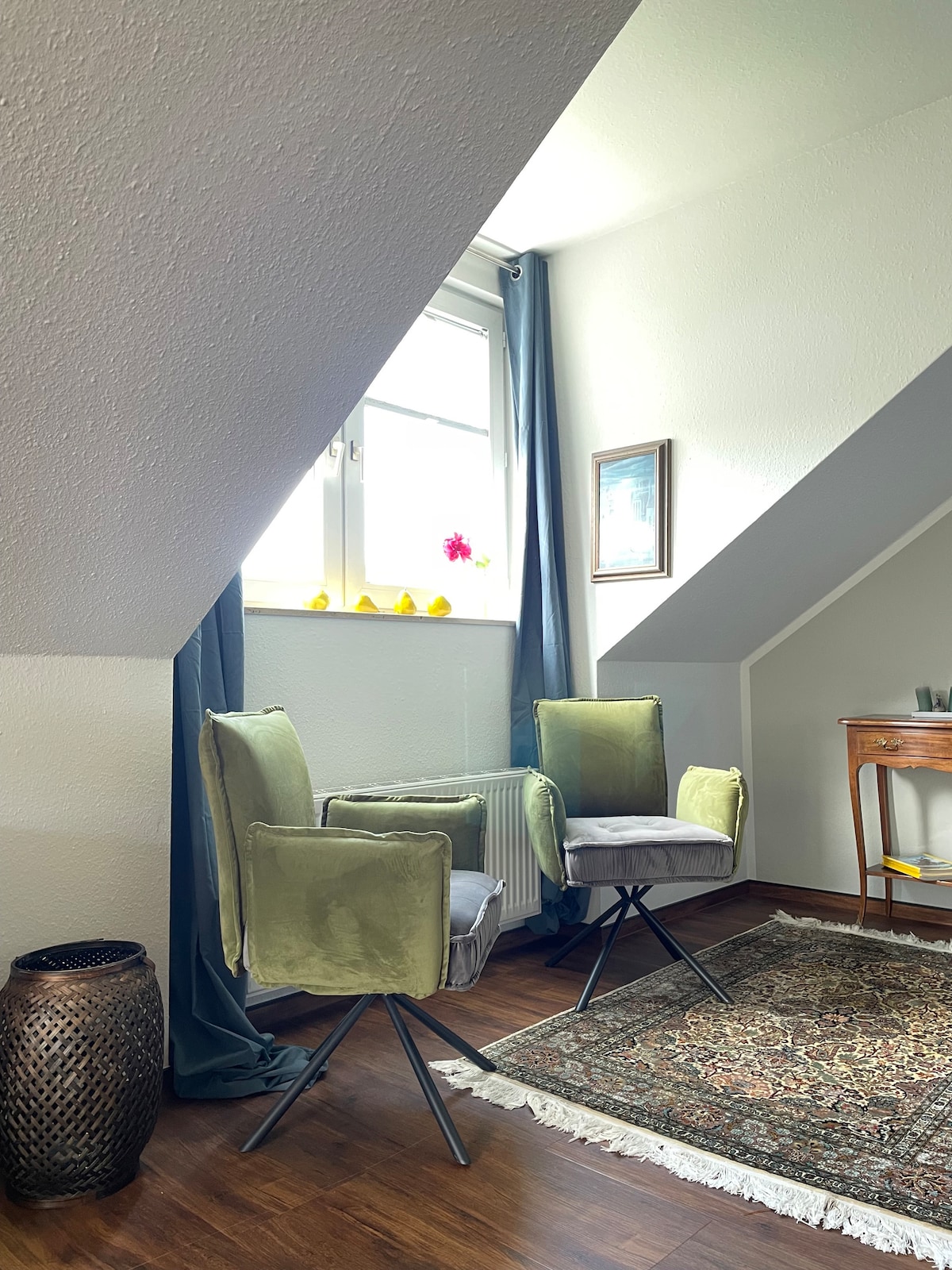 Az eredeti farm egykori gyülekezetét szeretettel alakítottuk át tágas padlásszobává. Az oromzatba épített lakás nagyon különleges bájt áraszt. A 75 négyzetméteres lakásban van egy hálószoba franciaággyal és babaággyal, valamint egy nagy nappali nyitott, teljesen felszerelt konyhával. A modern fürdőszobában fűtött falú zuhanyzó található.