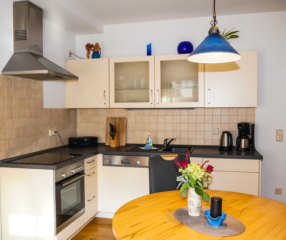 Az 1900-as villánk régi mosóháza a zöldben található. A modern módon felújított, világos stúdióház galériával. Akár autóval, tömegközlekedéssel vagy kerékpárral, házunk könnyen megközelíthető. Szintén az Elb kerékpárút, ez csak egy kis kitérő. A hangulatos és magas színvonalú bútorok arra invitálják Önt, hogy pihenjen, függetlenül attól, hogy munkaügyben, nyaralni vagy egy hétvégére érkezik a városba. Üdvözöljük!