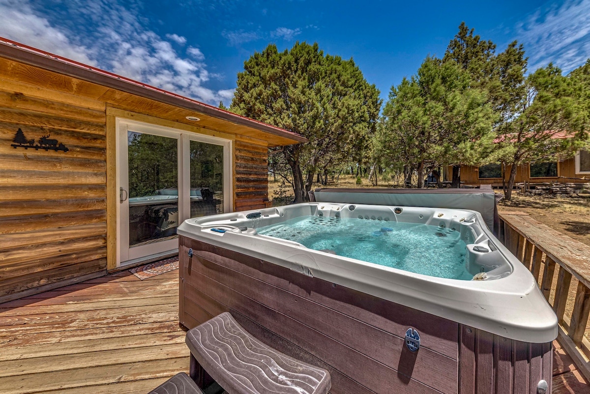 Ez a hangulatos kabin központi levegő-/hő- és szén-monoxid-érzékelőkkel rendelkezik. Saját pezsgőfürdőfedélzet függönyökkel és privát falakkal. Elsődleges hálószoba és fürdőszoba a földszinten, 2 hálószoba és fürdőszoba az emeleten. Nagy szórakozóhelyek fedélzete tűzrakóhellyel. INGYENES tűzifa. Percekre a Ski Apache & Winter Parktól síeléshez, túrázáshoz, horgászathoz, cipzáras béléshez és hegyi kerékpározáshoz. A közelben Ruidoso, Alto Lake és Flying J Ranch található.