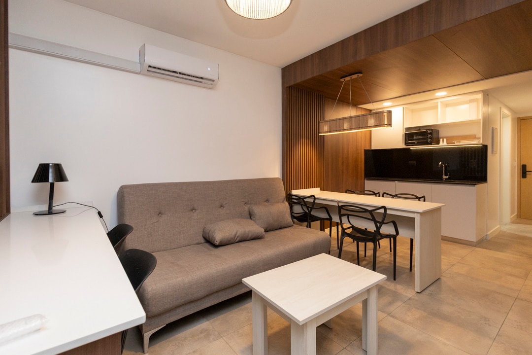 Un alojamiento de estilo en la mejor ubicación de la Ciudad de Buenos Aires, el elegante barrio de la Recoleta. Tendrás a tu disposición todo lo necesario para una estadía única, un apartamento cómodo, moderno y completamente equipado. Asimismo, en el edificio tendrás piscina en la terraza, gimnasio completo y sauna. En la planta baja encontrarás un hermoso jardín interno, para despejarse y tomar un descanso al aire libre.
