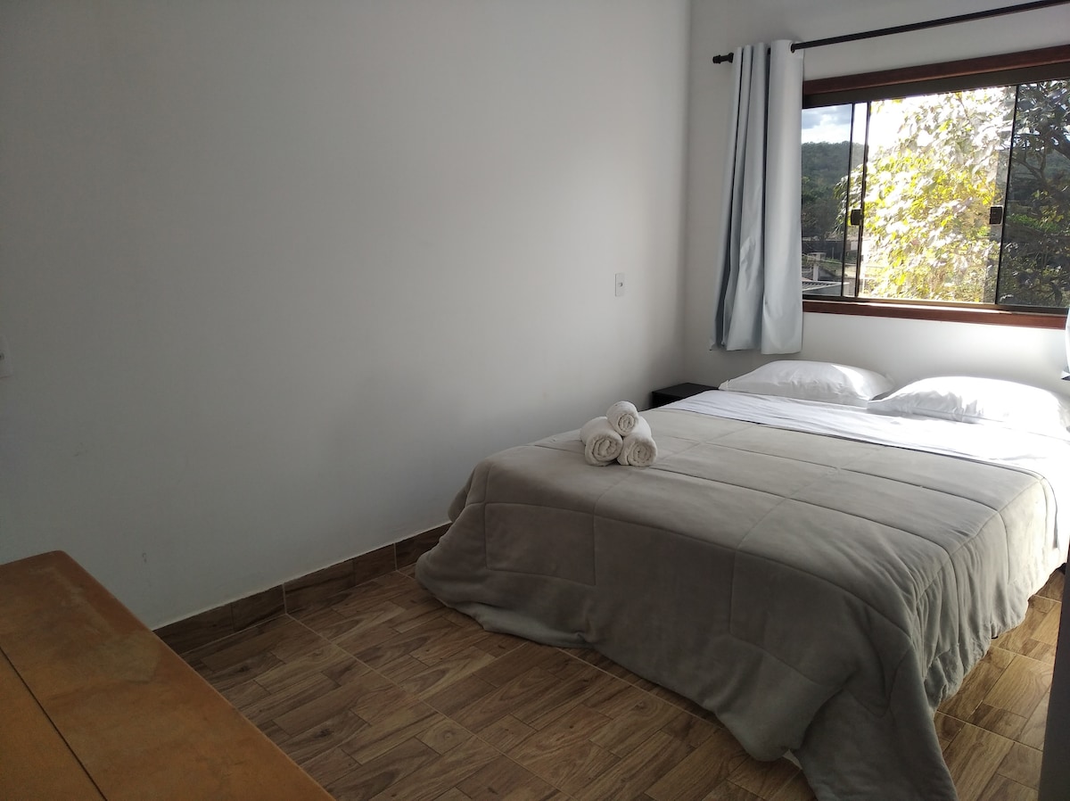 A Chapada dos Veadeiros szívében található, ahol a Cerrado és a hegyek tájat alkotnak. Mindössze 900 méterre a fő sugárúttól. A házat úgy tervezték, hogy a menekülteknek csendet és természetet biztosítson. Még mindig új illatú, és a bevetett kert a hátsó udvarba hozza a Cerradót. Tágas, modern és otthonos környezettel rendelkezik, beleértve azokat a területeket is, amelyek egyedi élményeket nyújtanak, és az „otthonos, az otthonon kívül” minden kényelmet biztosítanak.