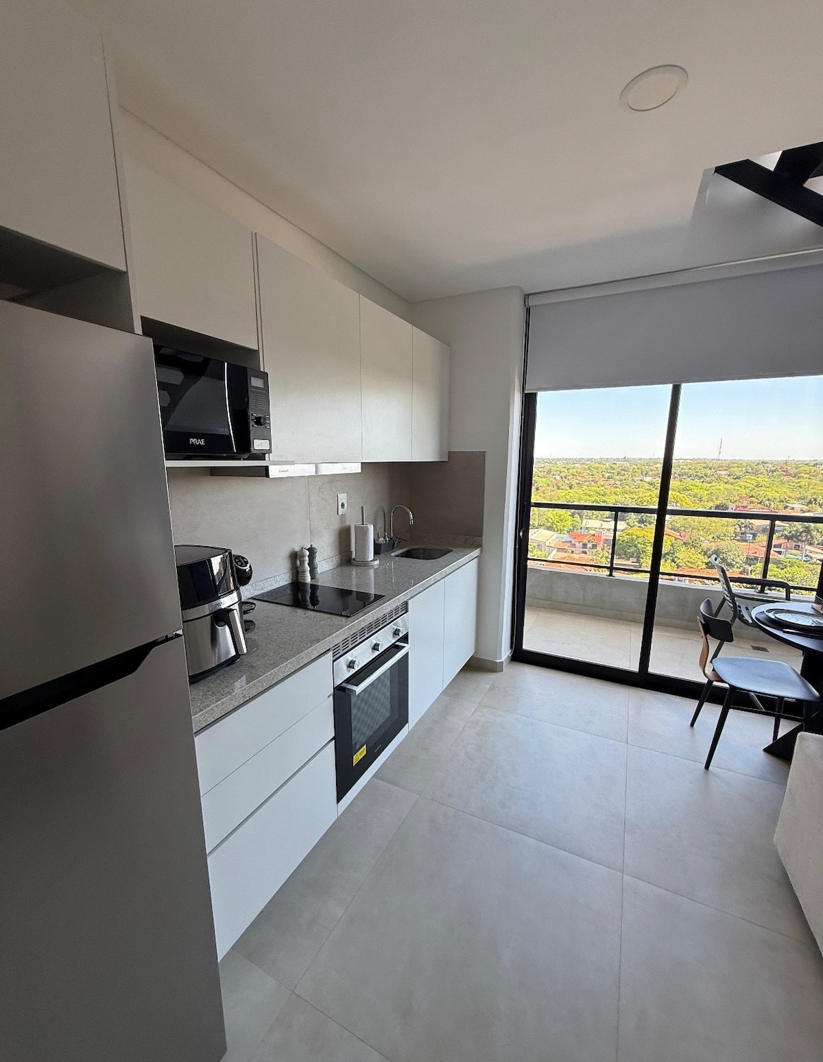 Compras 🛍️ + parking + recepción 24h Monoambiente cómodo en Ciudad del Este, ideal para compras o trabajo. Edificio con recepción 24h y parking, para llegar a cualquier hora sin problema. Cuenta con cama cómoda, WiFi rápido, cocina equipada y aire acondicionado. Ideal para estancias cortas o medias, práctico y sin complicaciones. A pocos minutos de la zona comercial y la triple frontera, detrás del hotel Dazzler.