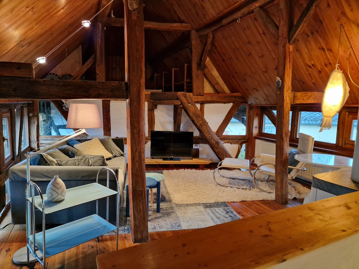 Ahogy egy barátom mondta: ez egy Rosamunde kísérleti álom... :) A The Gingerbread Guesthouse egy 350 éves, félig fából készült ház a festői Bacharach városában. A 100 négyzetméteres lakásban azonnal otthon érezheted magad, és élvezheted a híres festő sarkára nyíló hihetetlen kilátást, a városfalat a szerelemtoronnyal és a Stahleck kastélyt. Nem csinálhatsz többet Közép-Rajna romantikára.