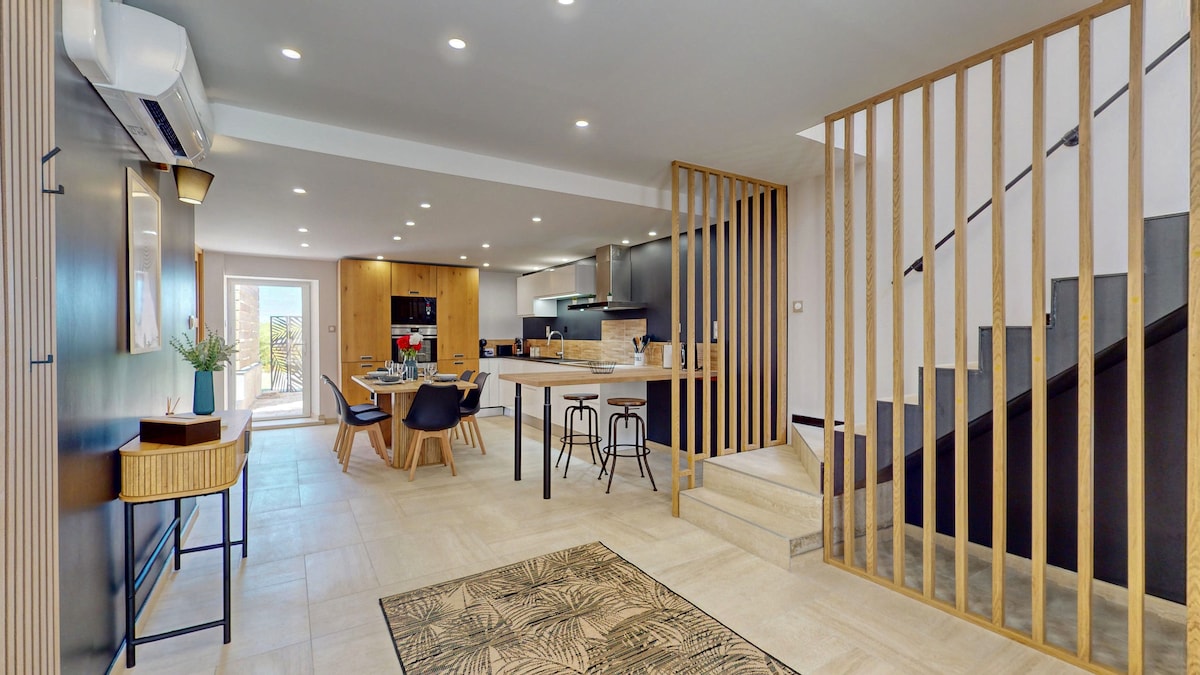 Ce logement affiche un style résolument unique. Un Appart de haut standing pour des moments de détente et d’intimité dans un contexte luxueux. Un salon ouvert sur cuisine équipé avec vidéo projecteur géant et un home cinéma pour être en total immersion lors d’une soirée Chill. Chambre spacieuse avec un lit QueenSize (160x200) confort assuré. Une salle de bain luxueuse avec douche a l’italienne comprenant un jaccuzi 3 personnes et un sauna pour 3/4 personnes avec accès direct à la chambre.
