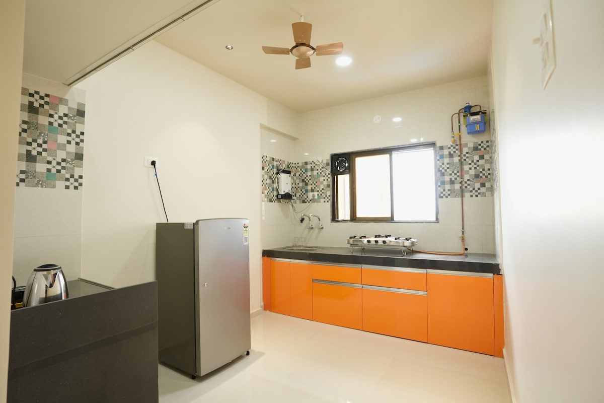 0,5 km-re a Rankala-tótól 2,5 km-re a Mahalakshmi-templomtól 4 km-re a Kolhapur vasútállomástól. Üdvözöl a Boho Haven by Trevy – egy hangulatos szállás, ahol a földszínek, a természetes textúrák és a kényelmes részletek együttesen teremtenek melegséget és kényelmet. Ez az átgondoltan kialakított 1BHK szabad szellemű hangulatot áraszt. Egy hely, ahol ellazulhatsz, álmodozhatsz, vagy egyszerűen csak otthon érezheted magad. Amit imádni fogsz: – Meleg, bohó ihletésű belső terek – Földszínek és természetes textúrák – Hangulatos, lelket nyugtató légkör