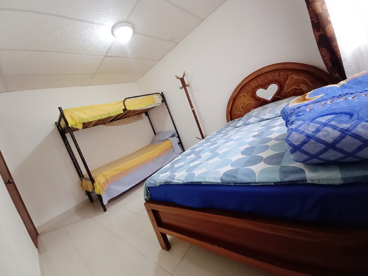Gyönyörű, újonnan felújított 2 hálószobás lakás 2 teljes fürdőszobával. A garázs kényelmes és tágas, tárolhatsz egy Ford F150-es pickupot. Élvezd a tágas kerteket, valamint az általunk kínált biztonságot és nyugalmat. Sétatávolságra található Ambato városközpontjától, a rendőrségtől, a Plaza de Torostól és az Andok bevásárlóközpontjától. Közel éttermekhez, szupermarketekhez, busz- és taxivonalakhoz. Ideális az Ambatón áthaladó családok vagy vezetők számára.