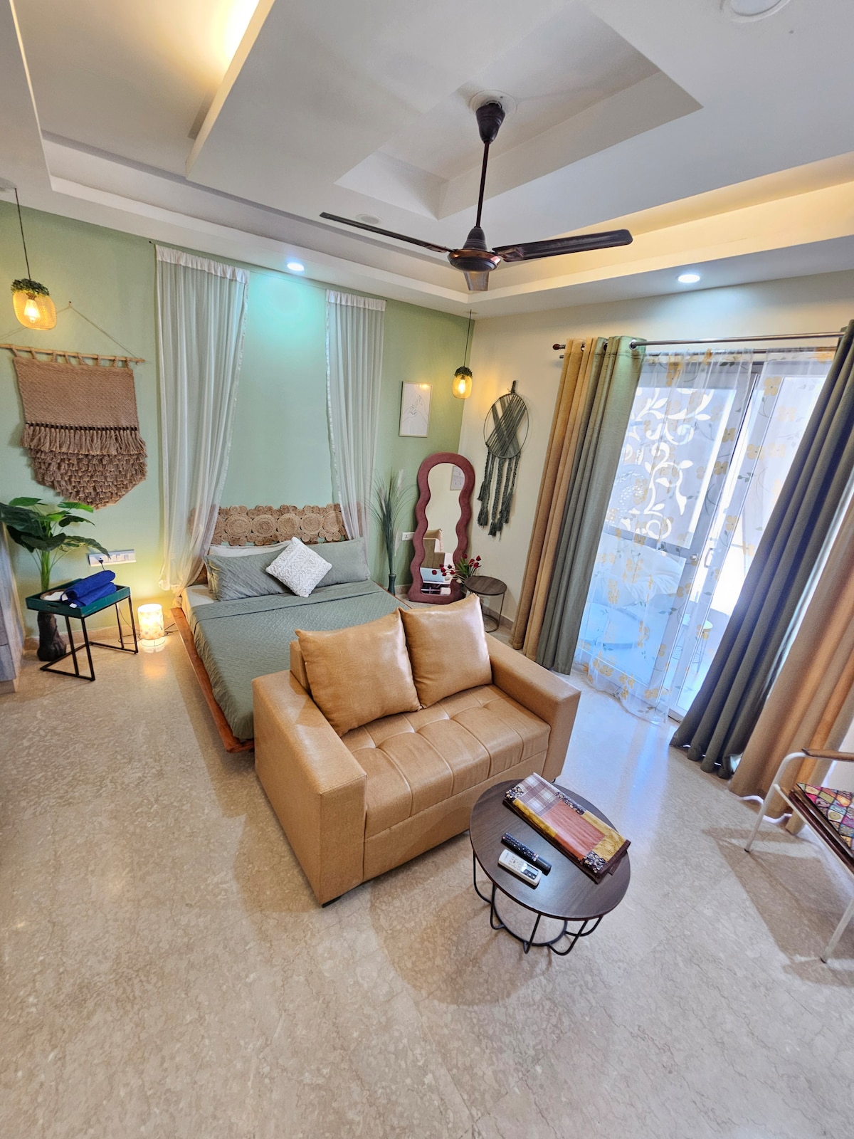 Üdvözlünk az otthonodban, távol az otthonodtól - a luxus és a nyugalom találkozik a Gurugram nyüzsgő szívében található, gyönyörű, stúdióbarát lakásunkban. A buja növényzet és a káprázatos városi fények között megbúvó kortárs menedéket azoknak terveztük, akik a kényelem és a kifinomultság tökéletes keverékét keresik.