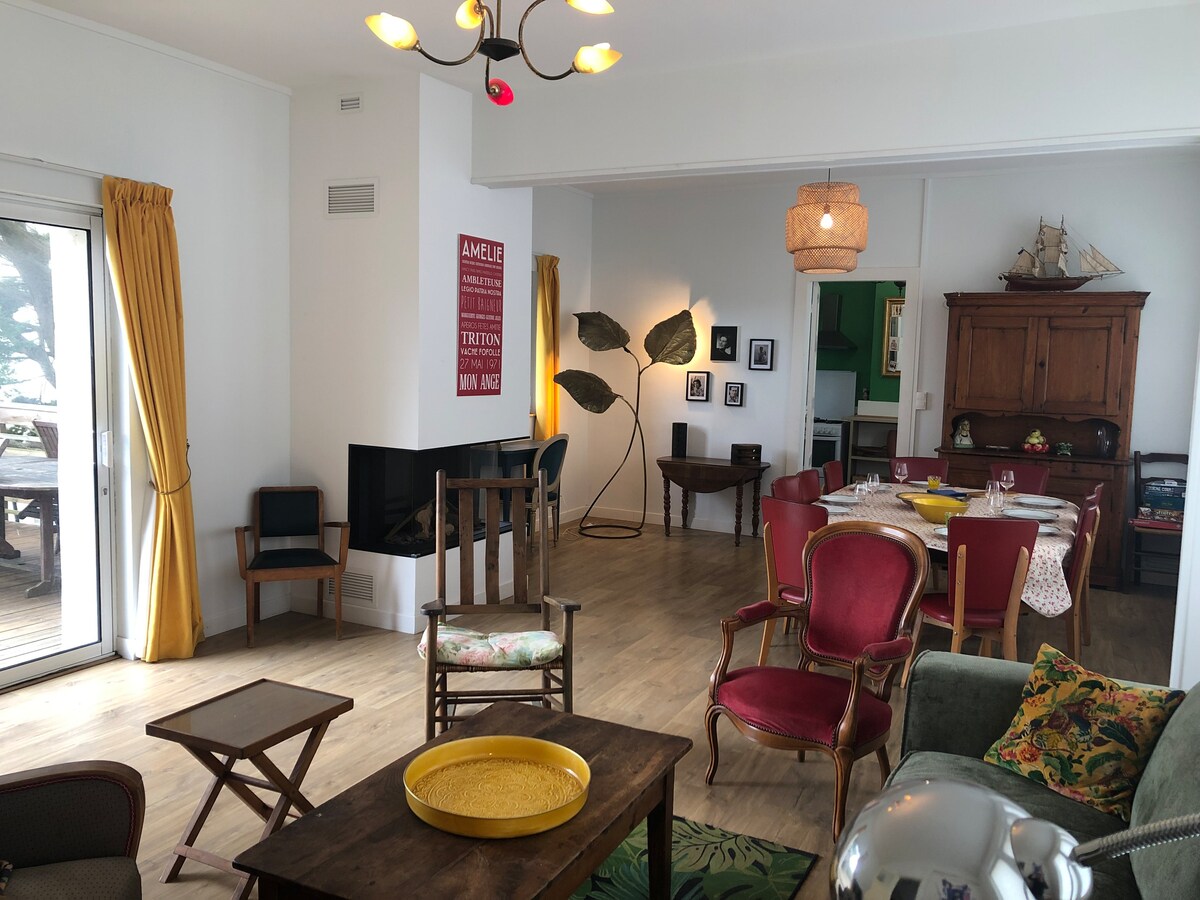 A falu tetején, a Mer Nature időszakban a béke és a virágok. 8 perc sétára a strandtól és 5 percre az üzletek, ez a T2 ( 27 m2) kényelmes 1 pár vagy 2 felnőtt. Csendes és kényelmes tél és nyár. Kényelmesen leparkolsz a ház előtt, és mindent gyalog csinálsz. Közel a tengerhez, a faluhoz és a vidékhez túrázni. Élvezni fogja a virágos kertben az étkezés vagy egy pillanatra olvasás a napon egy napozóágy.