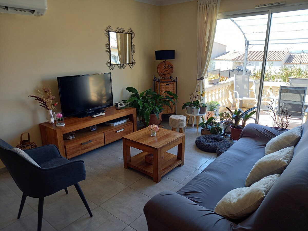 4 személyes szoba, 30 m2, csendes Arènes 1/4 óra sétára