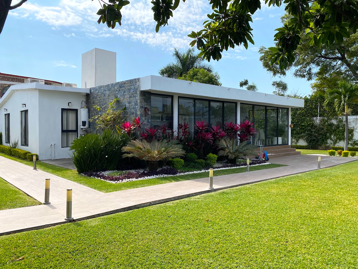 Cómoda y moderna casa, bien decorada, acogedora, ubicada en hermoso fraccionamiento residencial, con un clima privilegiado. Cuenta con alberca y gran jardín. El fraccionamiento cuenta con campo de golf, casa club y escuela de tenis. Muy cerca de la hermosa Hacienda de Cocoyoc, Tepoztlán, Tlayacapan, Cuernavaca, Cuautla y Six Flags Hurricane Harbor. así como diversos sitios que podrás conocer y disfrutar una maravillosa experiencia!!!!!