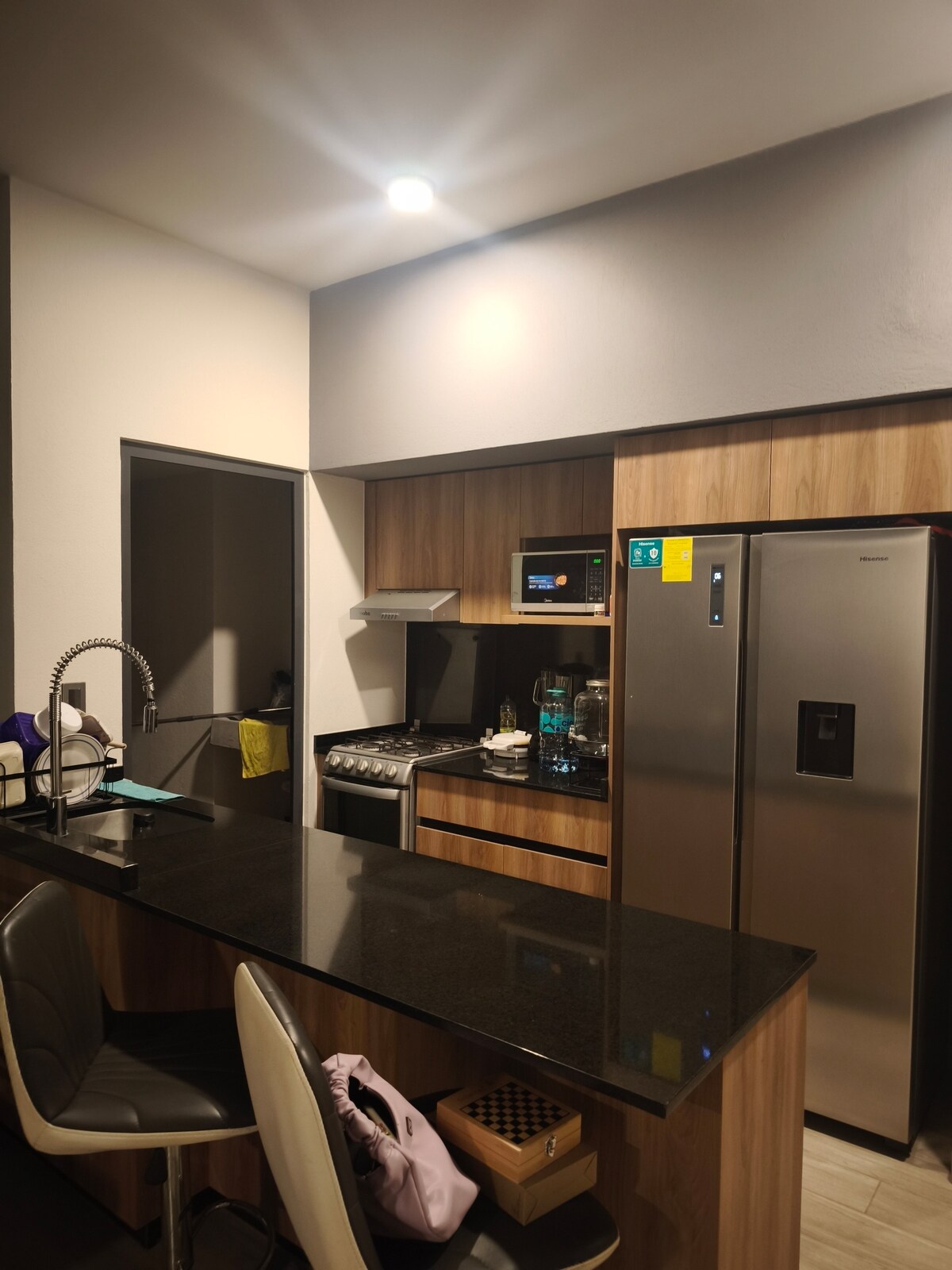 Amplio departamento donde podrás disfrutar de comodidad y tranquilidad. Si facturamos. Disfruta de una relajante estancia en nuestro departamento con una linda vista desde las alturas. Mantente activo en el club deportivo, disfruta de la alberca semi olímpica templada para practicar tus estilos de natación y de todas las amenidades en Cosmopol Lifestyle.