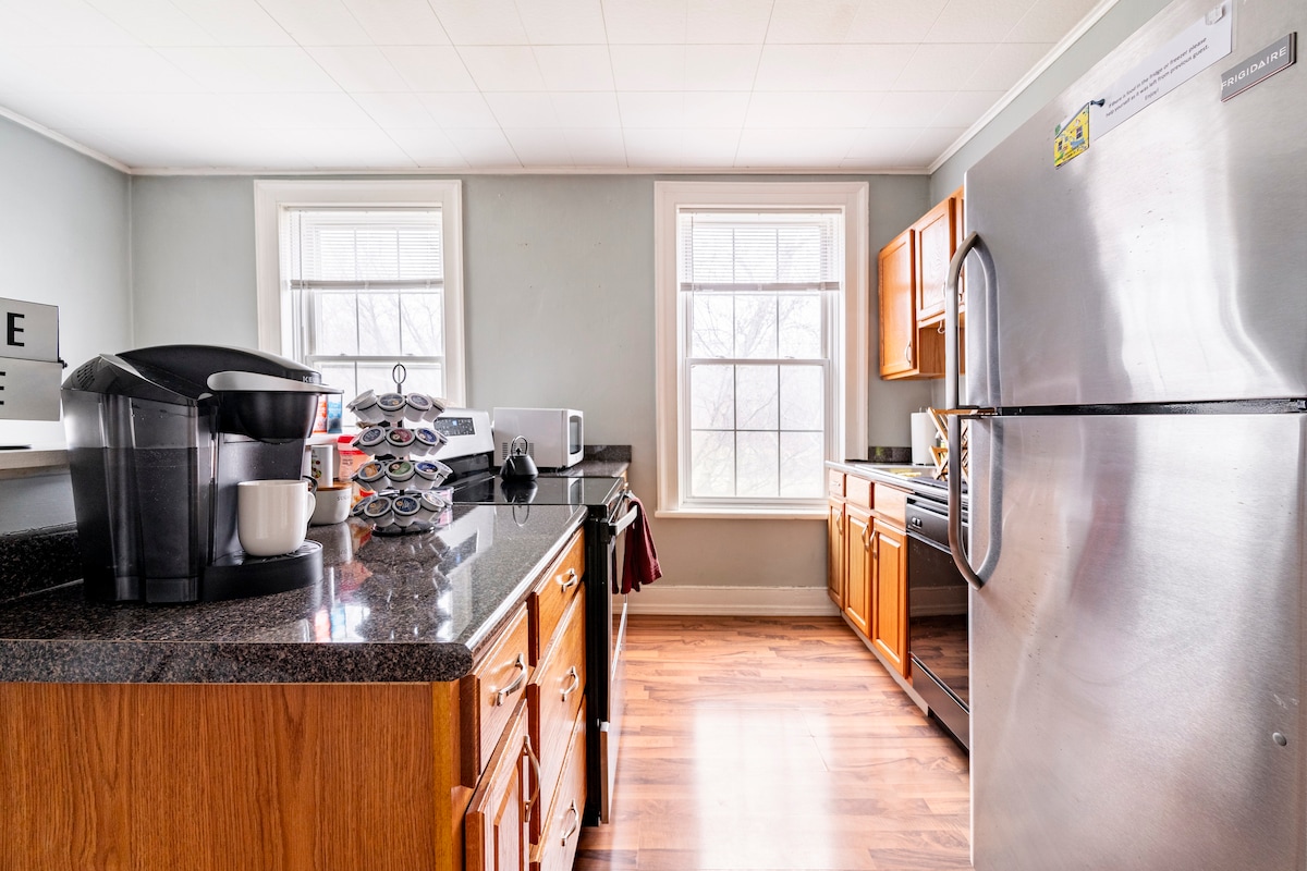 Tapasztald meg a történelmi bájt és a modern luxust! Üdvözlünk egy teljesen felújított 1840-es évekbeli iskolaépületben, ahol a történelem találkozik a luxussal. Ez az elbűvölő kiruccanás a következőket kínálja: Luxus Nectar Premier king méretű ágy, amely pihentető alvást biztosít. Hangulatos propángázos kandalló az esték felmelegítéséhez. Privát pezsgőfürdő a tökéletes kikapcsolódásért. Teljes konyha, amely minden alapvető kellékkel fel van szerelve a kulináris igényeidnek megfelelően. CASPR Continuous Air and Surface Sterilization System, providing a clean air environment.