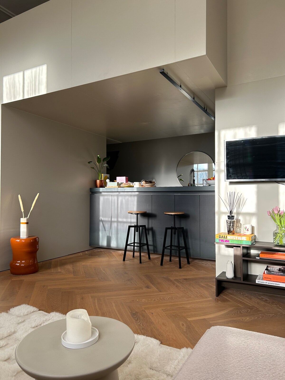 Ezt a második emeleti 19. századi szénatárolót kényelmes otthonná alakítottam (16 éves fiammal együtt itt lakunk). Nagyon világos és tágas. A környék tele van csemegékkel, bárokkal és éttermekkel. Rijks, Stedelijk, van Gogh múzeum és a csatornák a sarkon túl találhatók. Akárcsak a kerékpárkölcsönzők, a hajókirándulások, a Paradiso és a Concertgebouw. Ez az otthonom és a stúdióm (tervező vagyok), amikor utazom, az Airbnb-n vagyok.