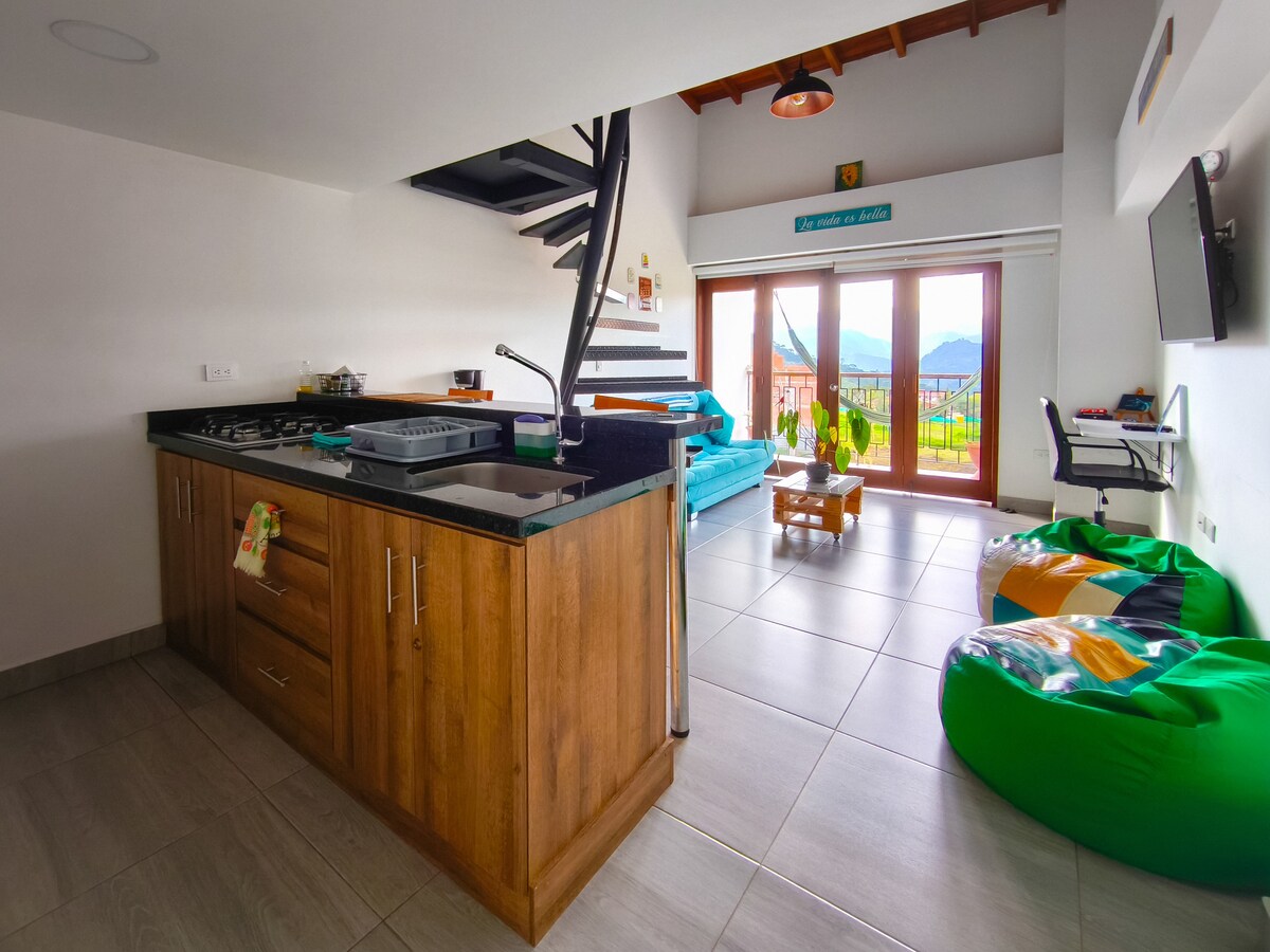 This apartment blends modern design with warm wooden details, creating a calm and stylish atmosphere surrounded by trees and mountain views. Inside, you’ll find a comfortable double bed, a fully equipped kitchen, a bathroom, a dining area, WIFI, and a large TV. The house features private parking and outdoor areas ideal for relaxing, reading, or enjoying the quiet countryside. Located just minutes from Jardín’s town center, you can enjoy both convenience and peaceful seclusion.